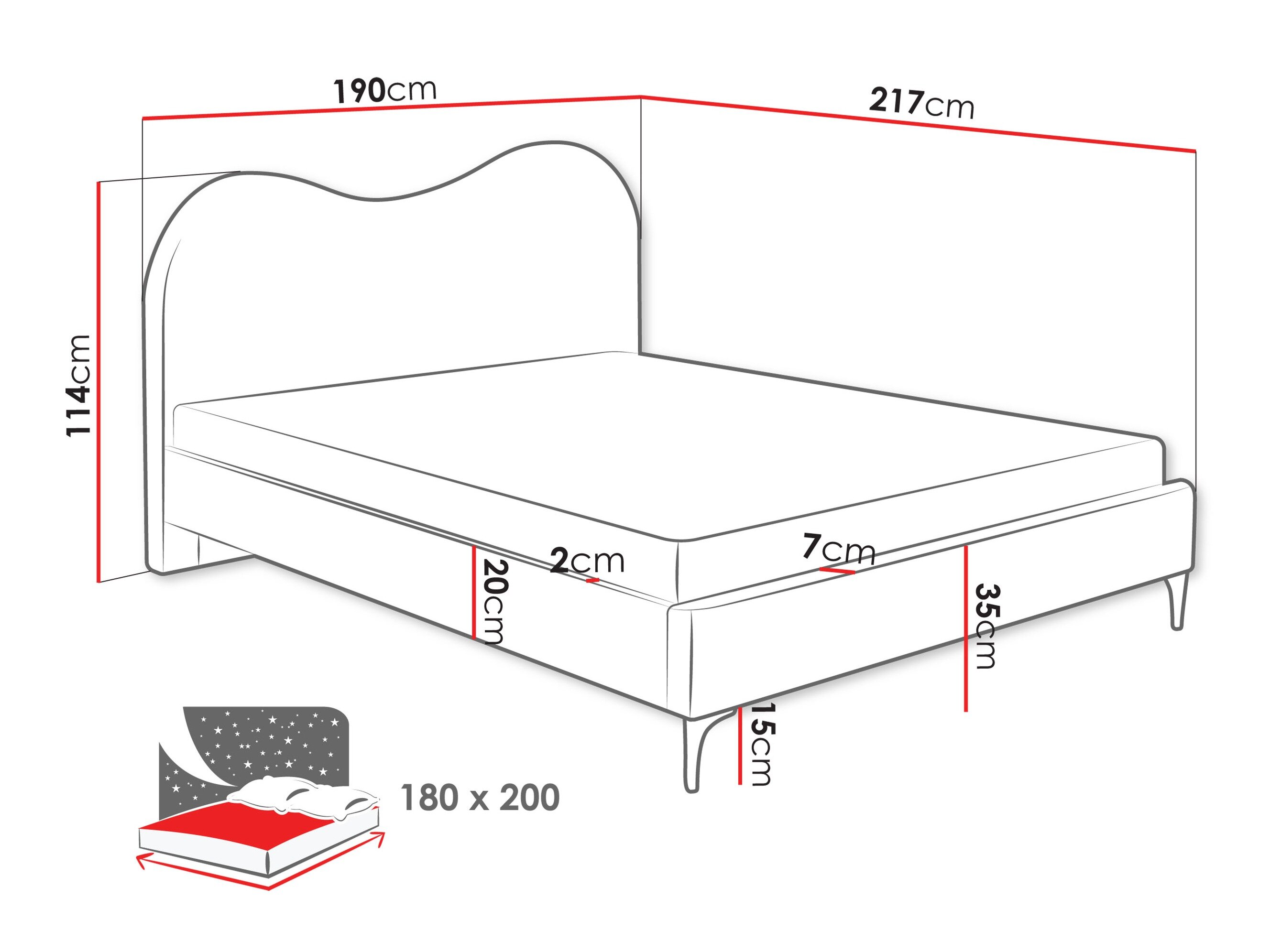 Pritaikyta čiužiniui [feature] Pritaikyta čiužiniui 180 x 200 cm