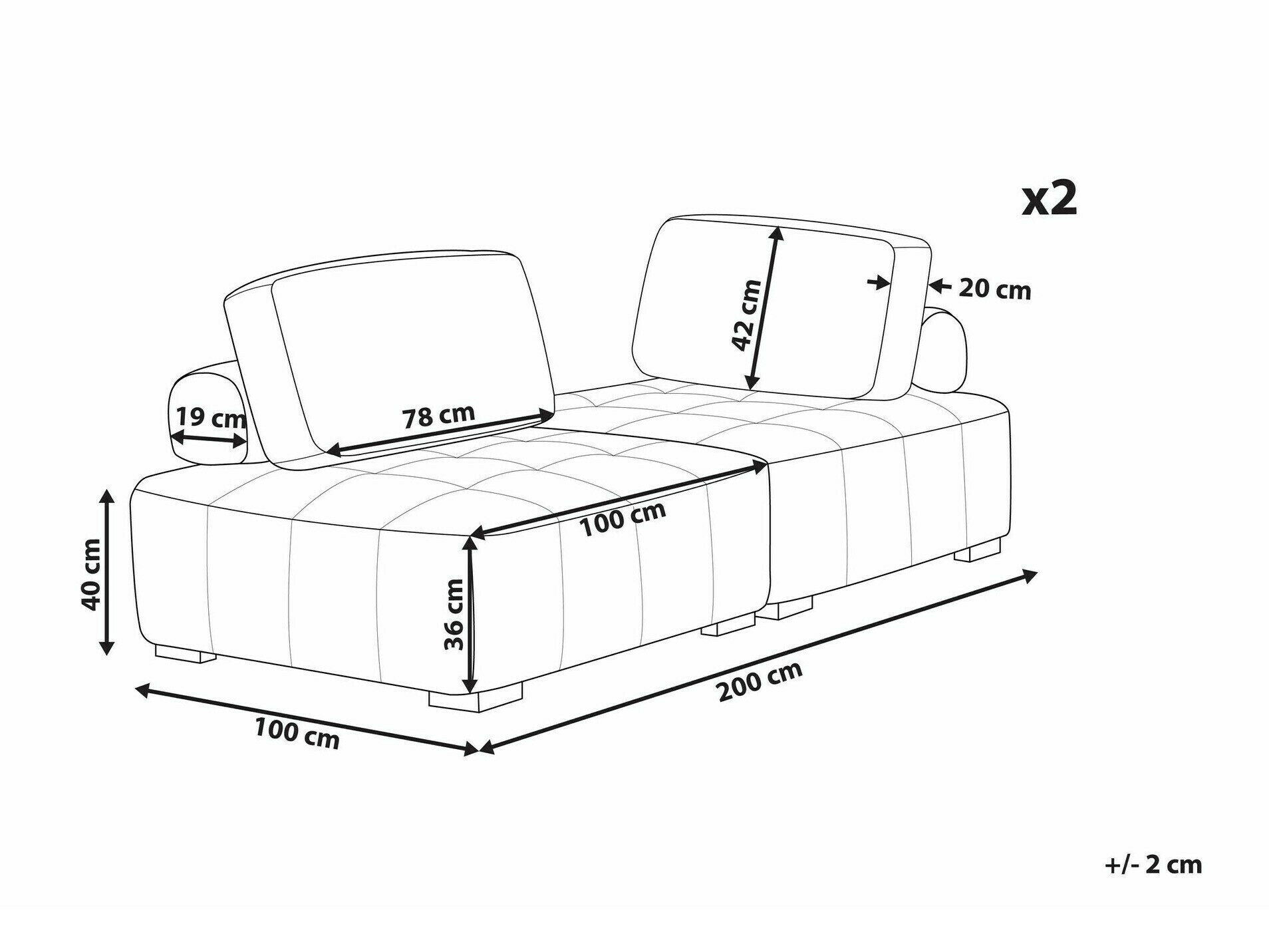 82 x 200 x 100 cm