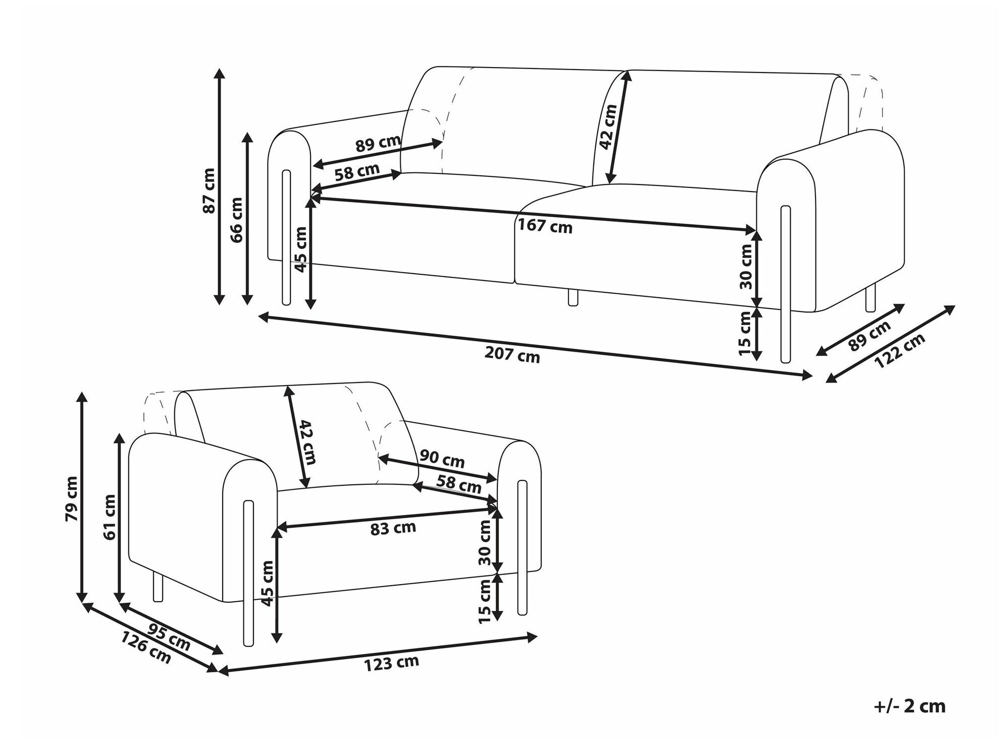 87 x 207 x 89 / 122 cm