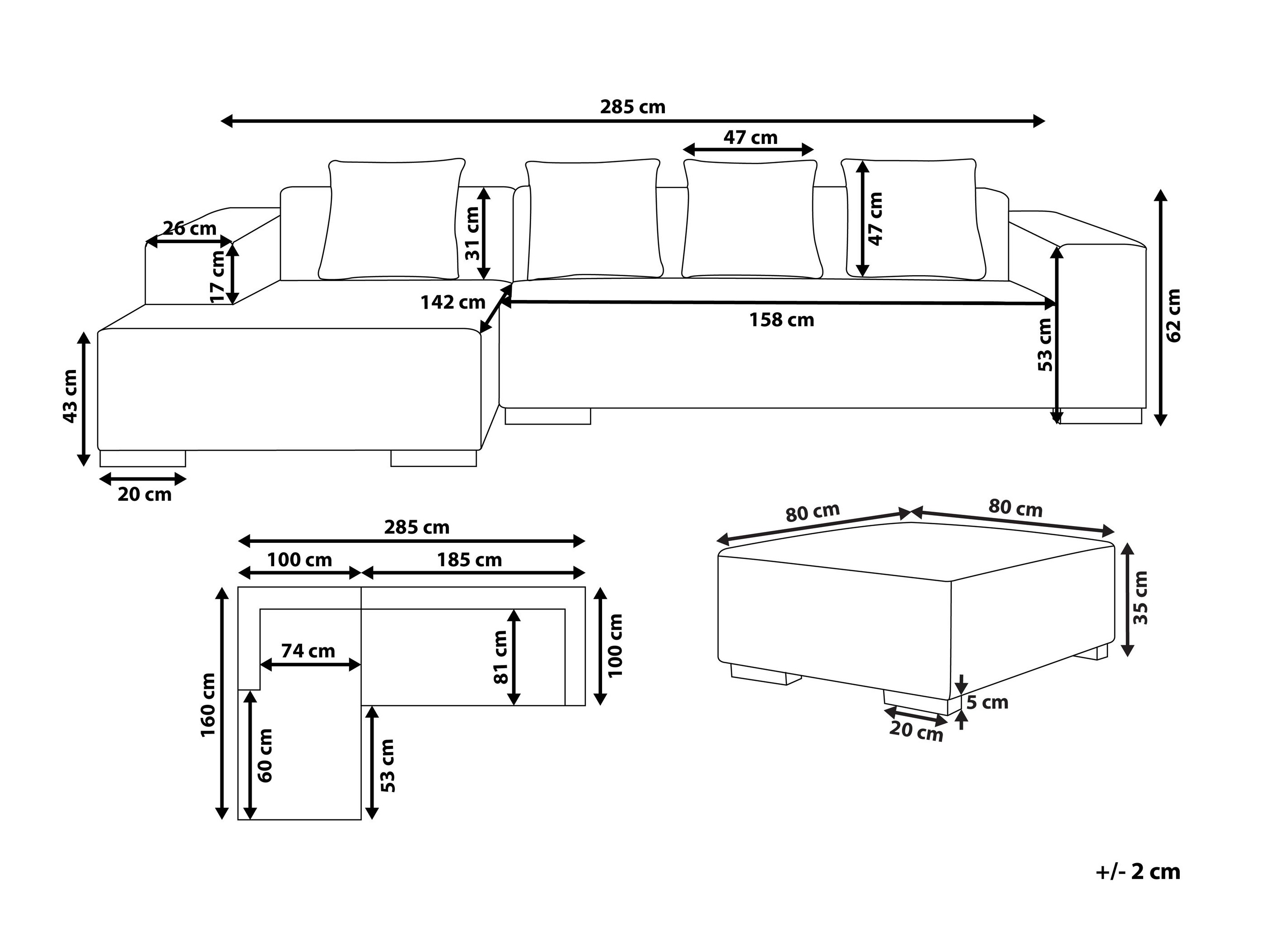 62 x 285 x 160 cm