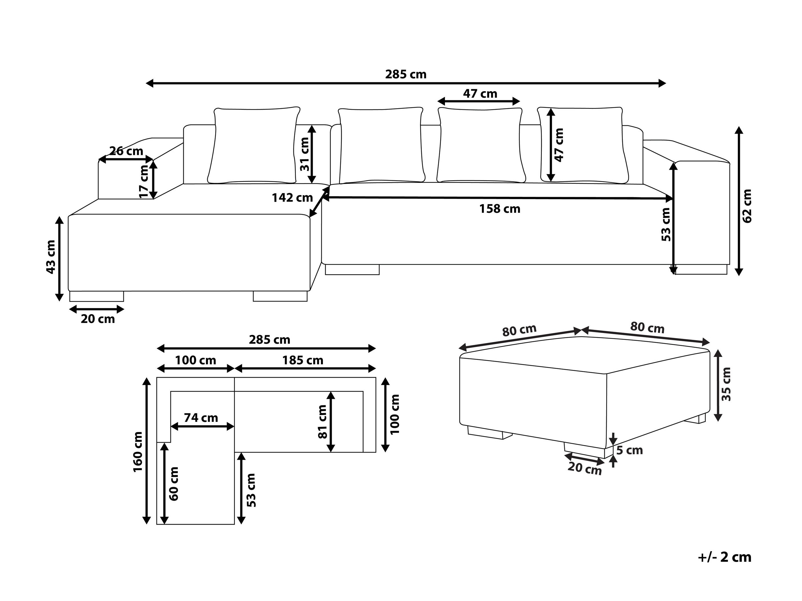 62 x 285 x 160 cm