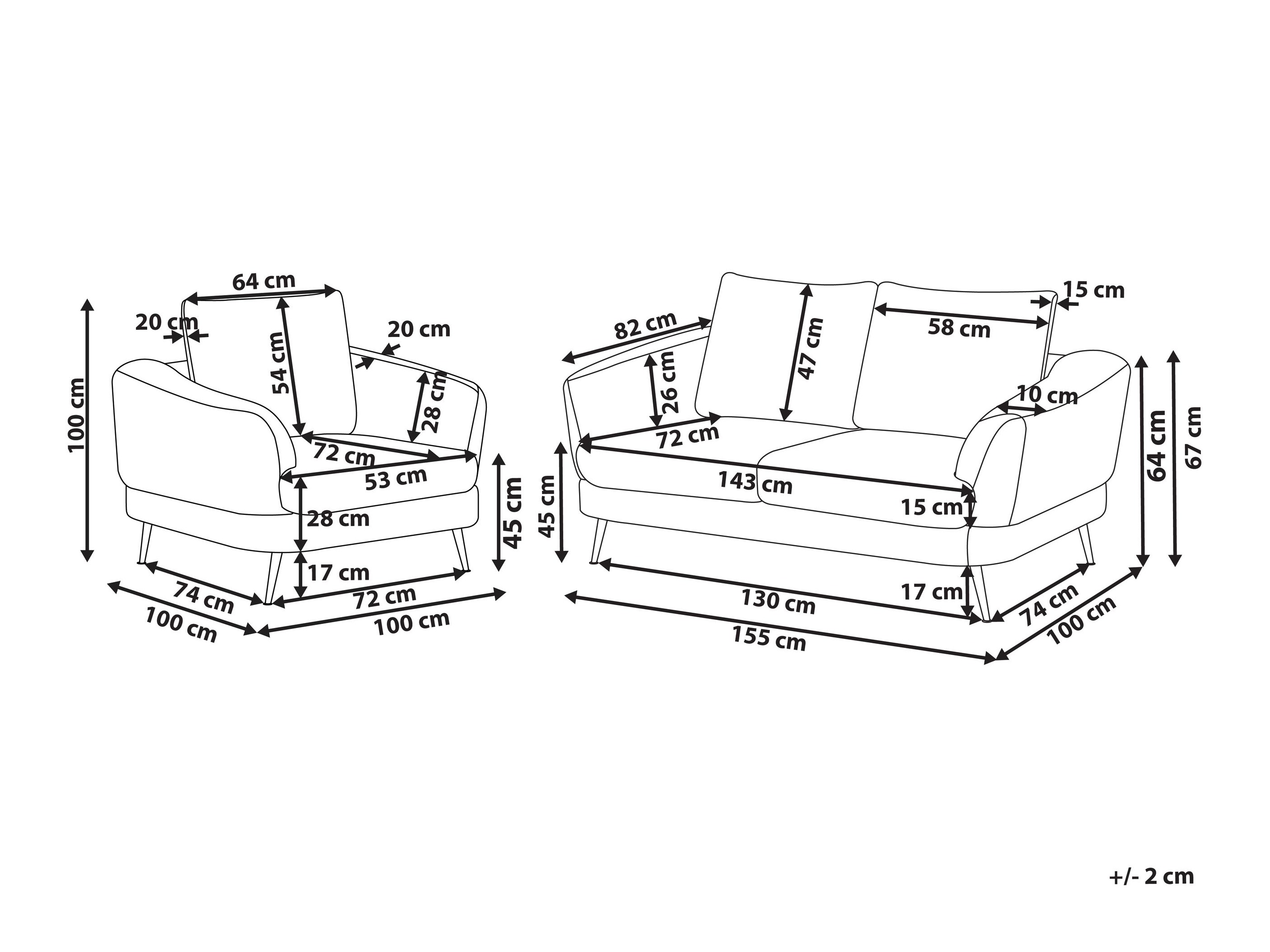 Fotelio matmenys: