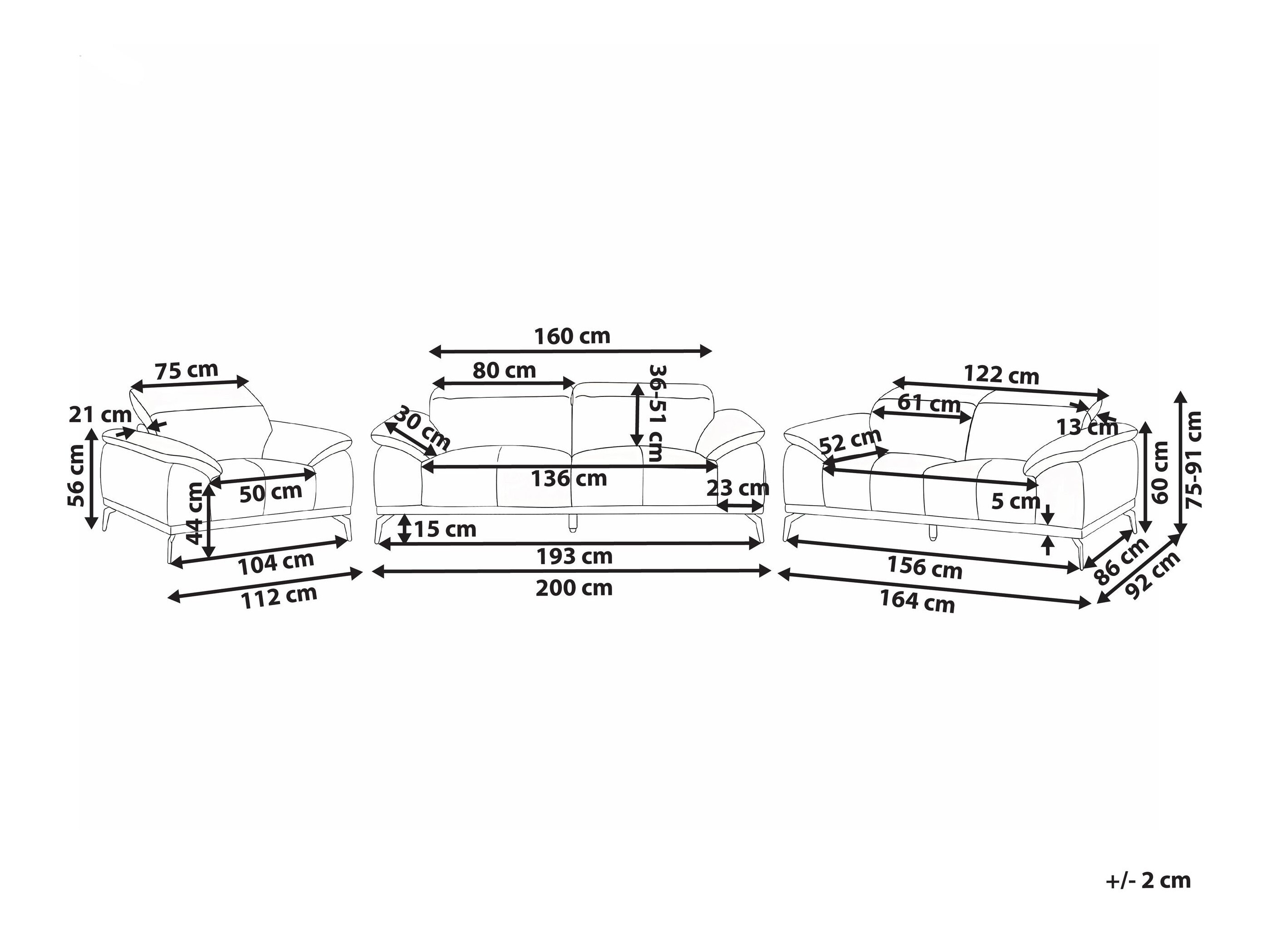 Trivietės sofos matmenys: