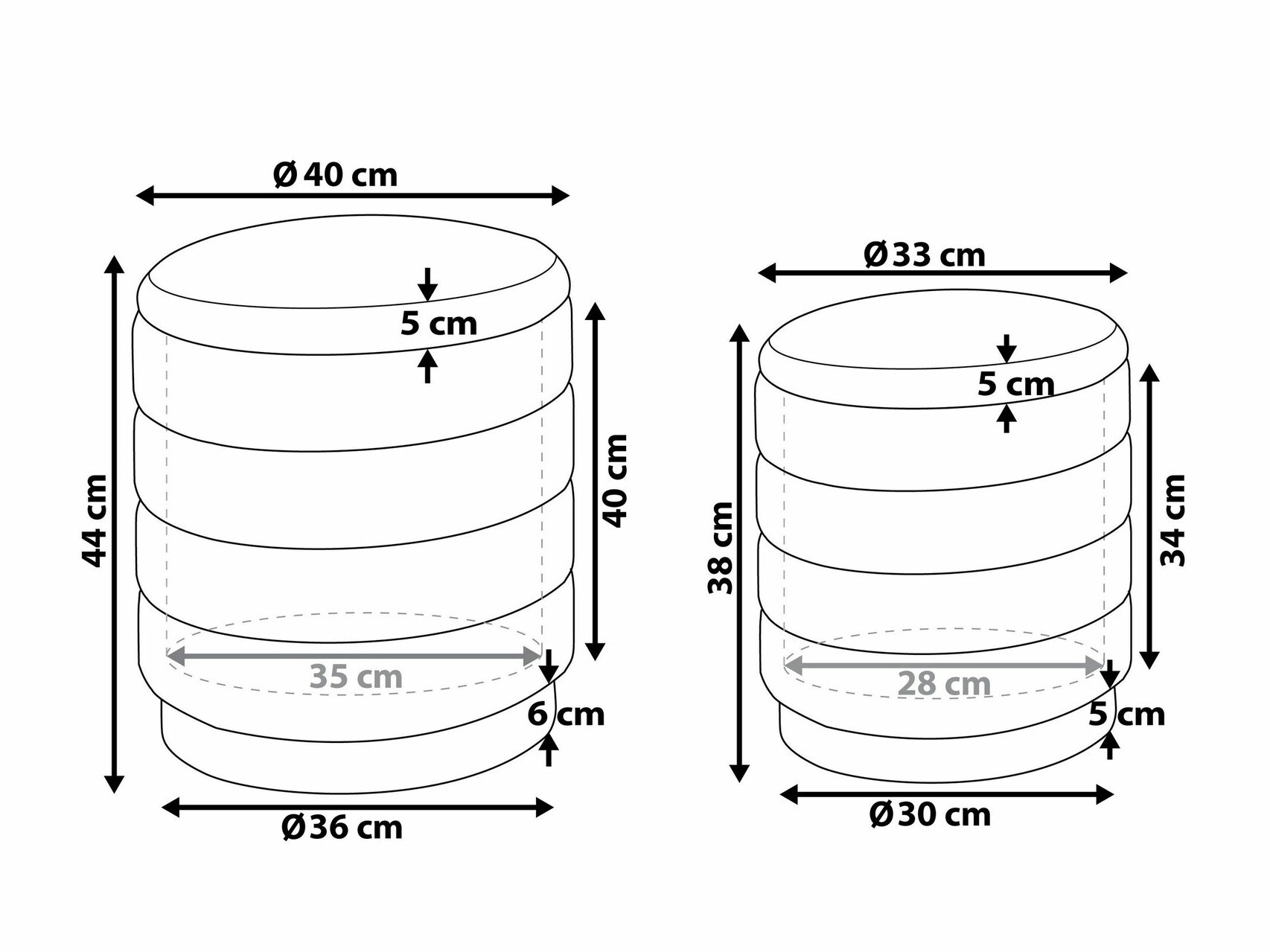 Pufo matmenys: