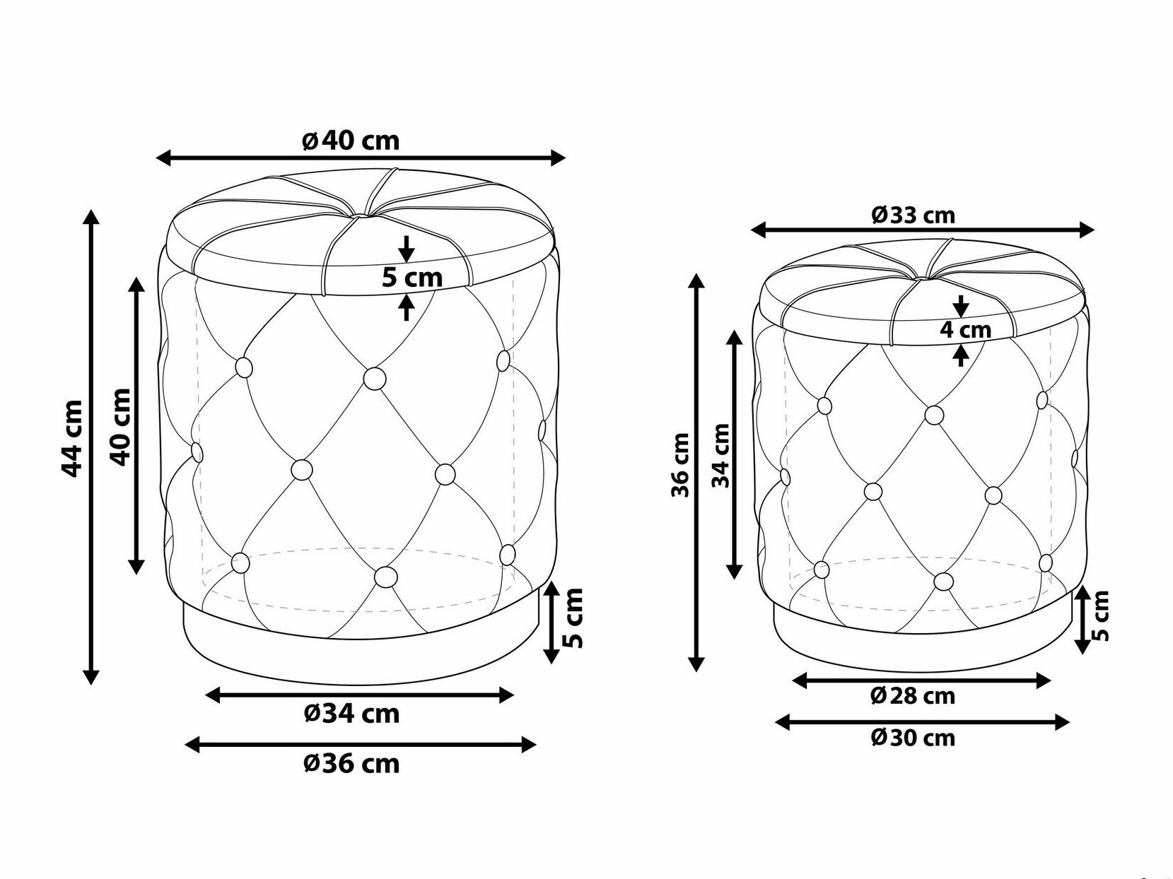 Pufo matmenys: