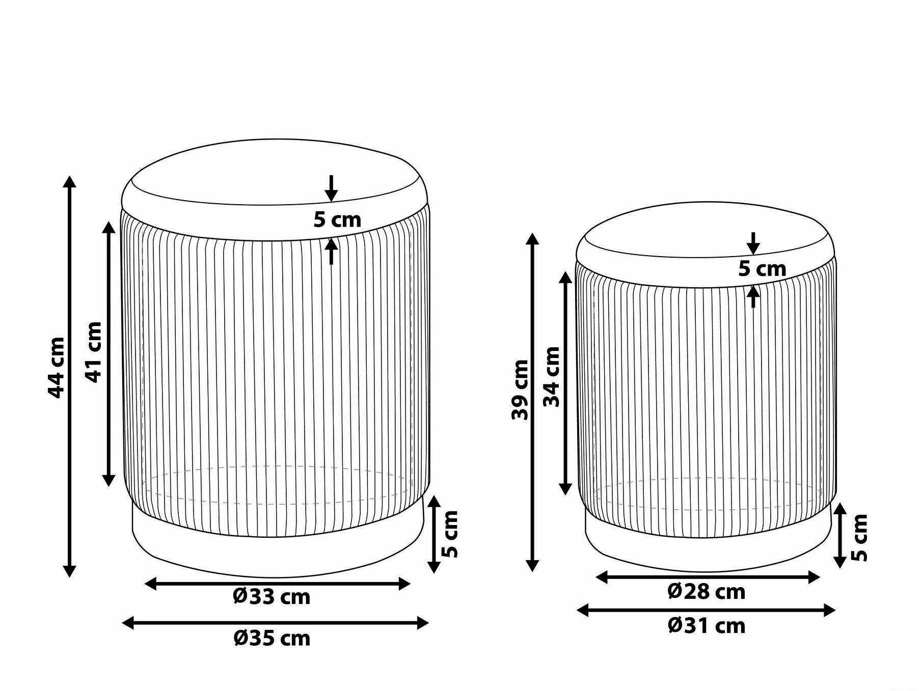 Pufo matmenys: