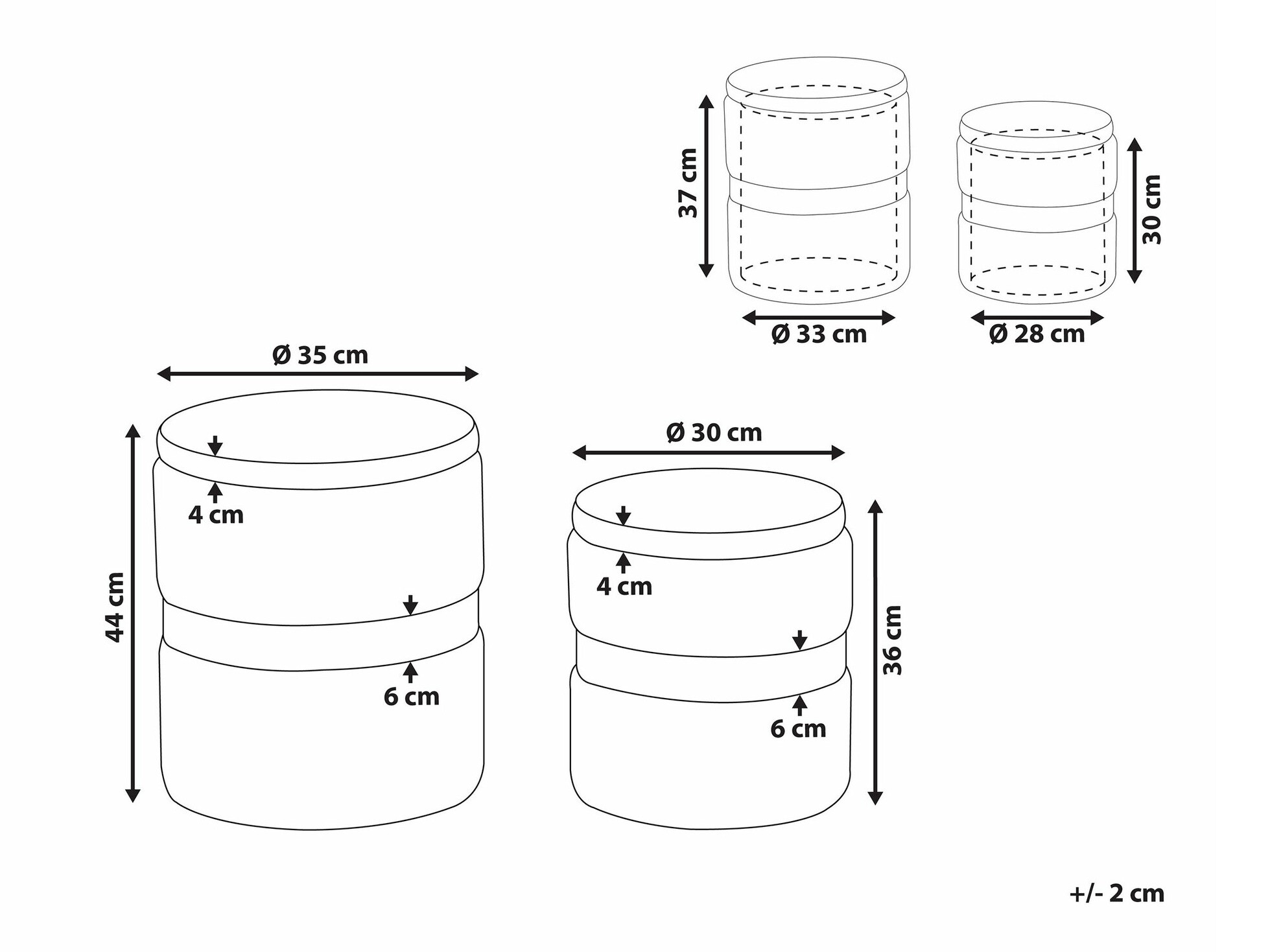 Pufo matmenys: