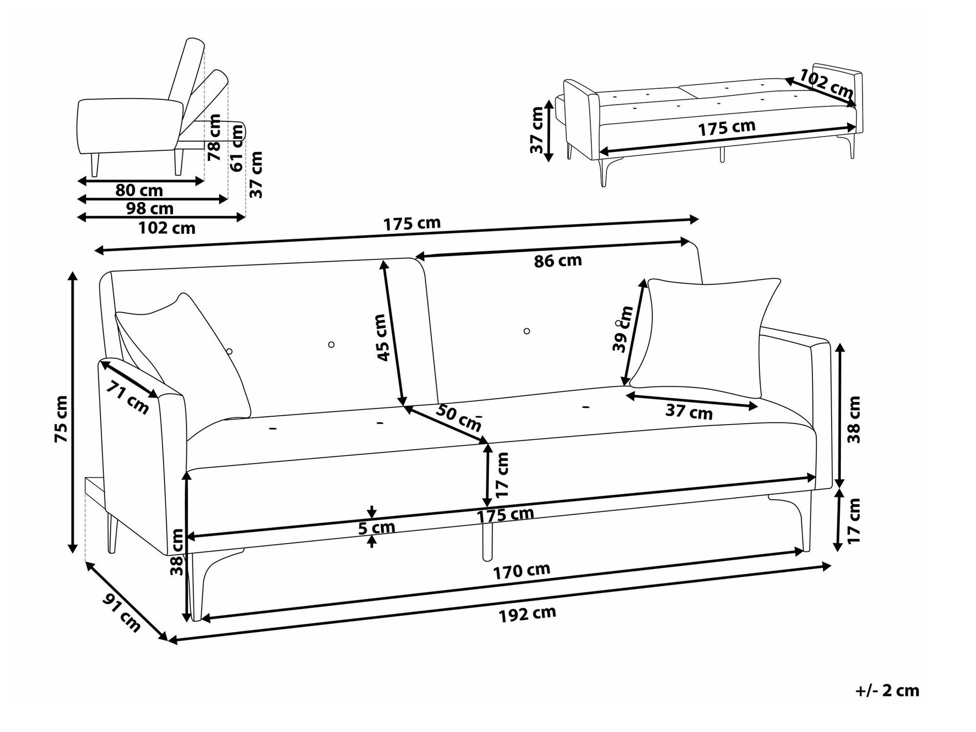 75 cm  175 cm  91 cm