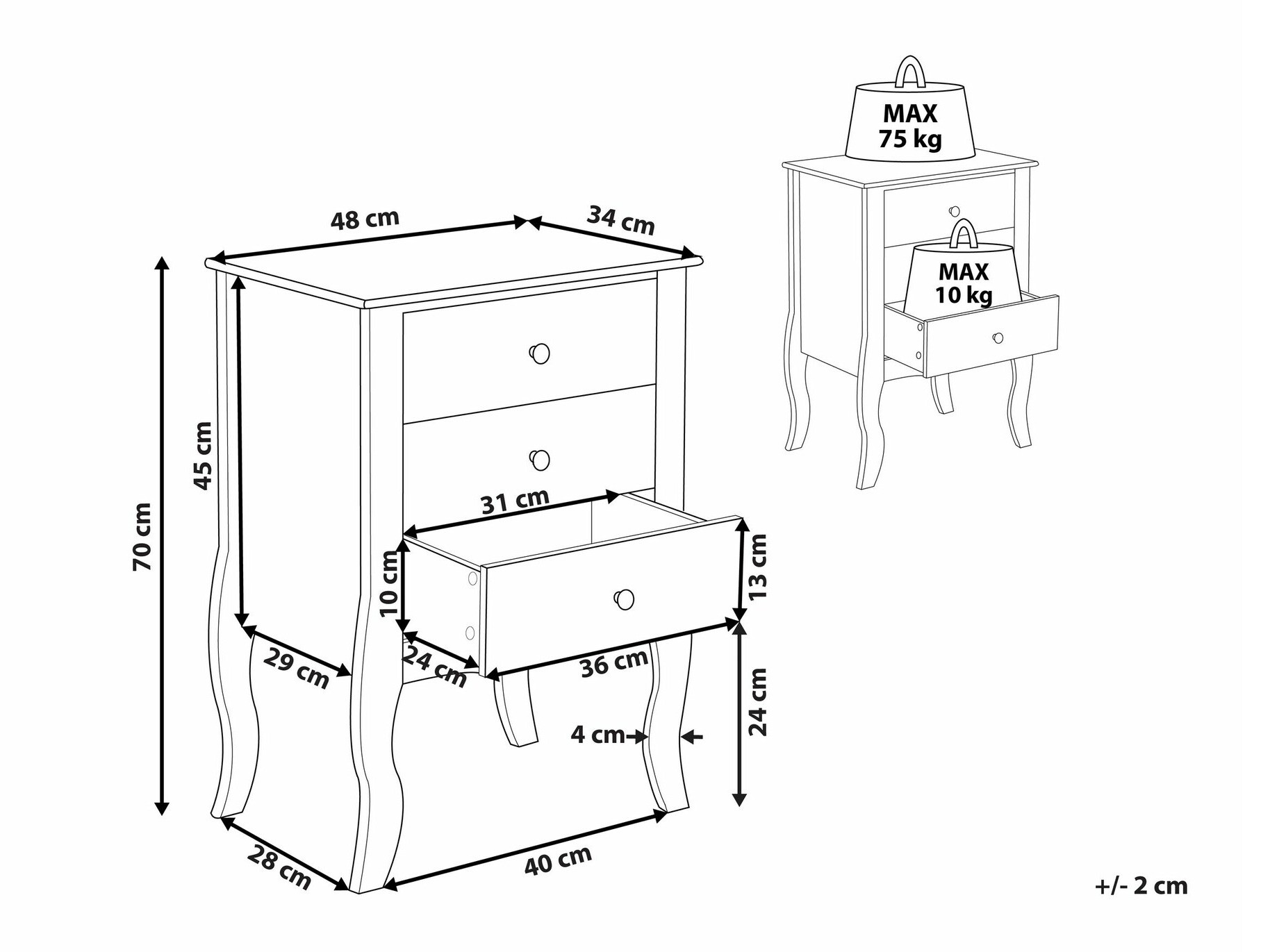 Maksimalus išlaikomas svoris stalčiui: