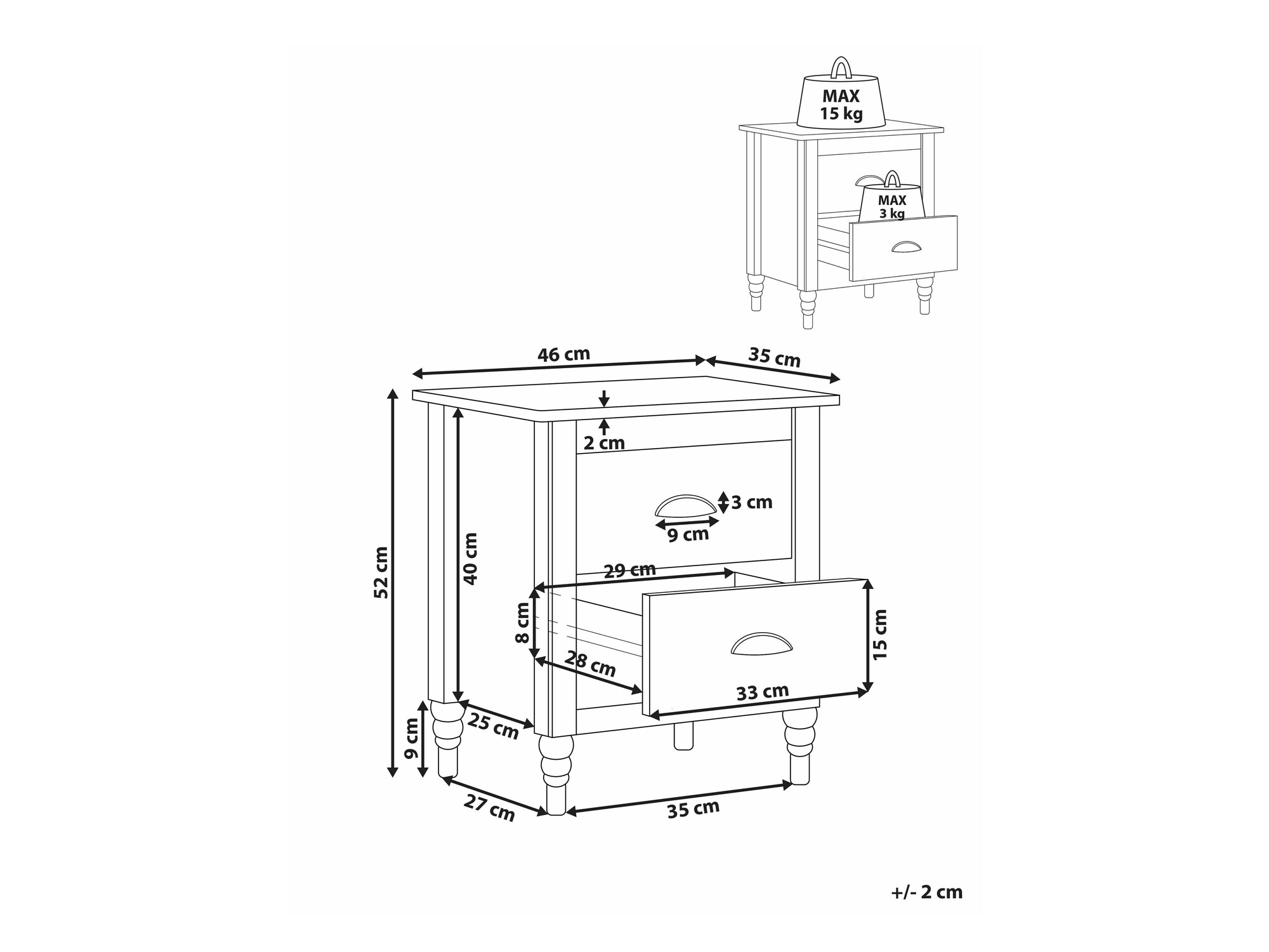 Maksimalus išlaikomas svoris stalčiui: