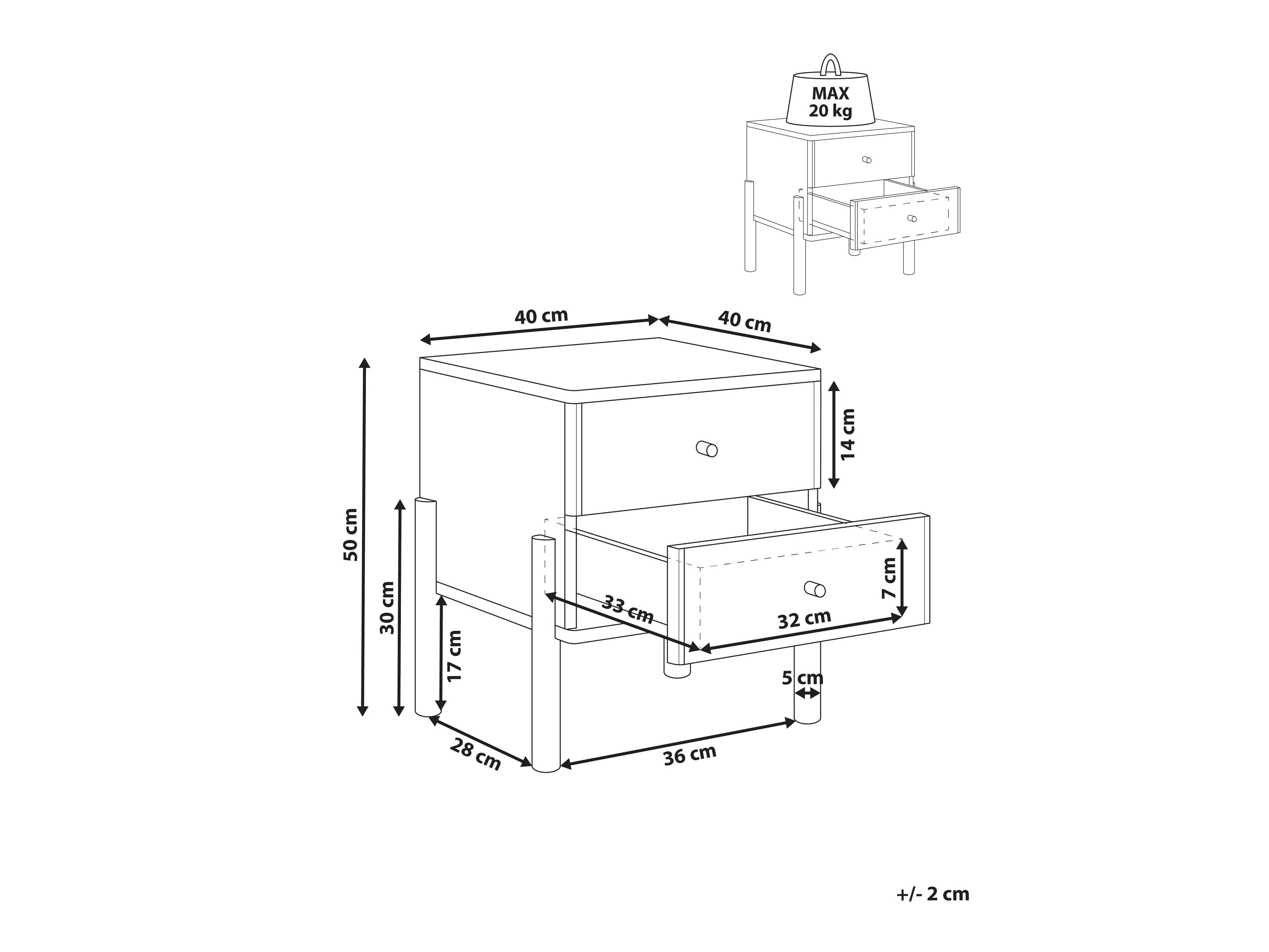 Maksimalus išlaikomas svoris stalčiui:
