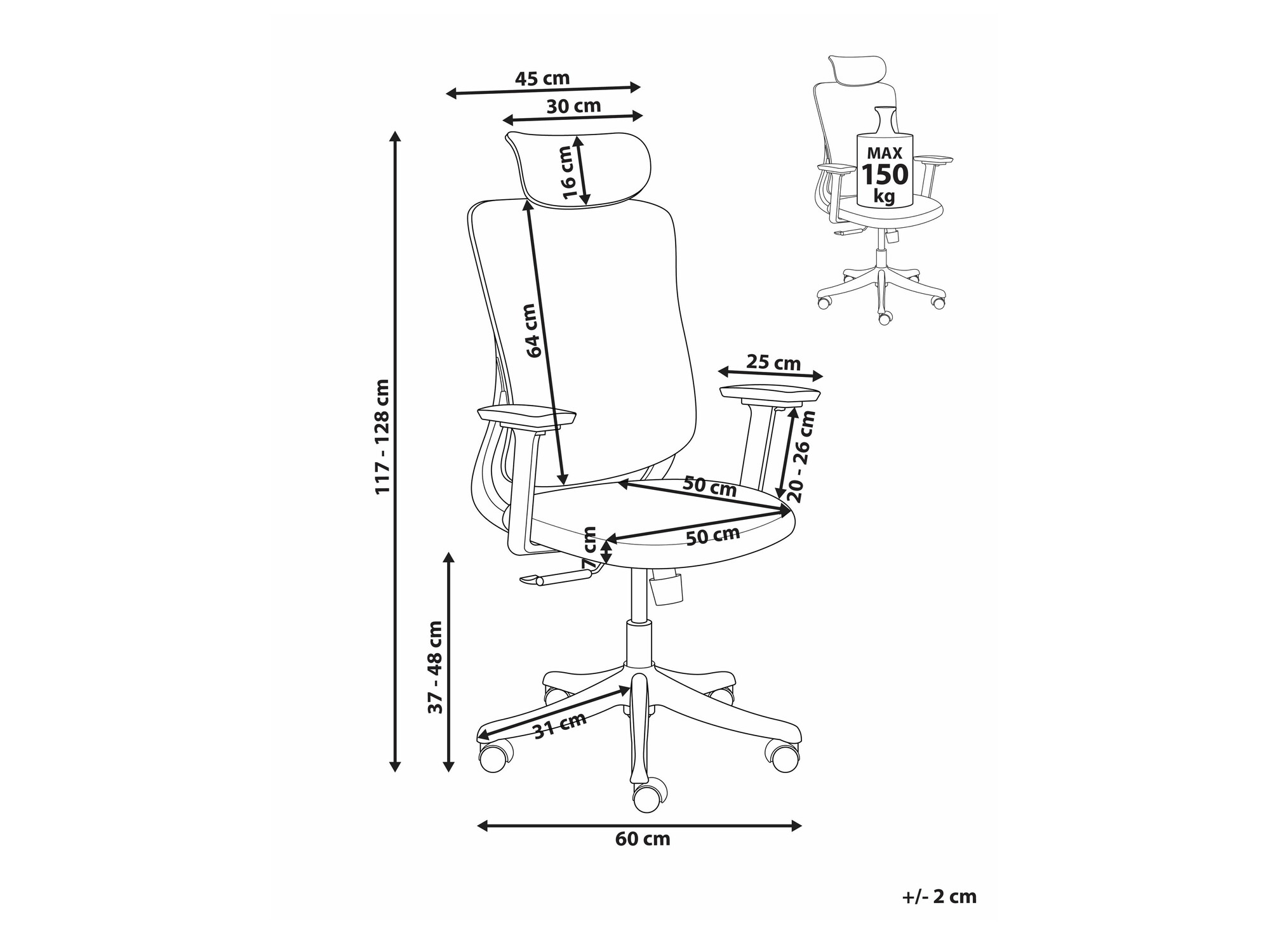 Maksimalus sėdimosios dalies aukštis: