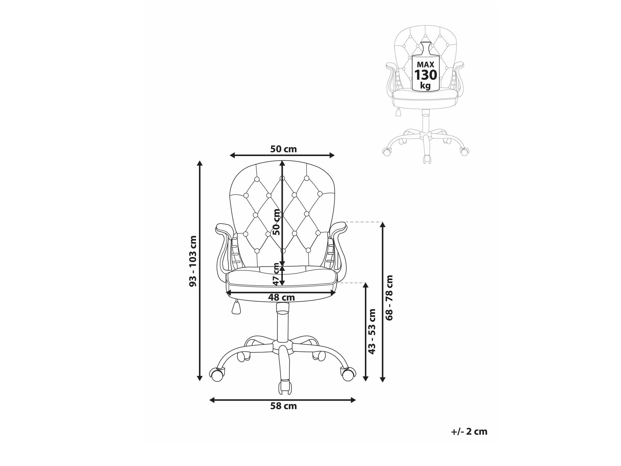 Maksimalus sėdimosios dalies aukštis:
