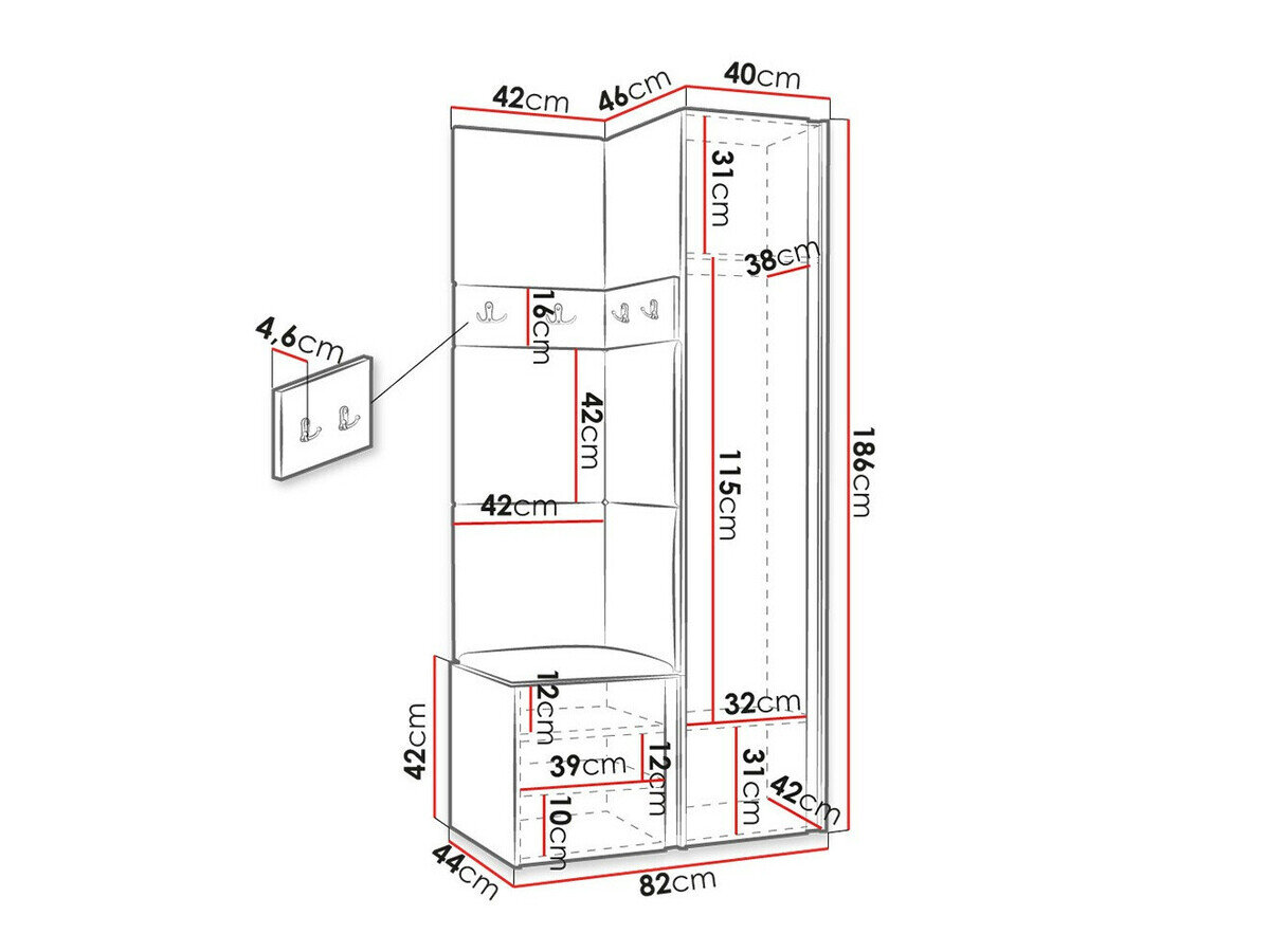 186 x 40 x 44 cm