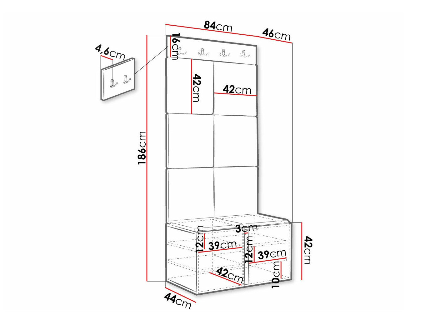 42 x 84 x 44 cm
