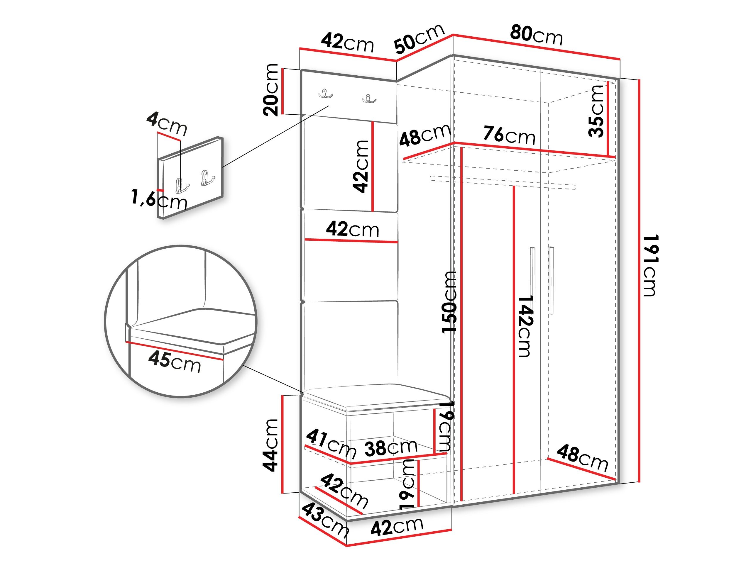 20 x 42 x 4 cm