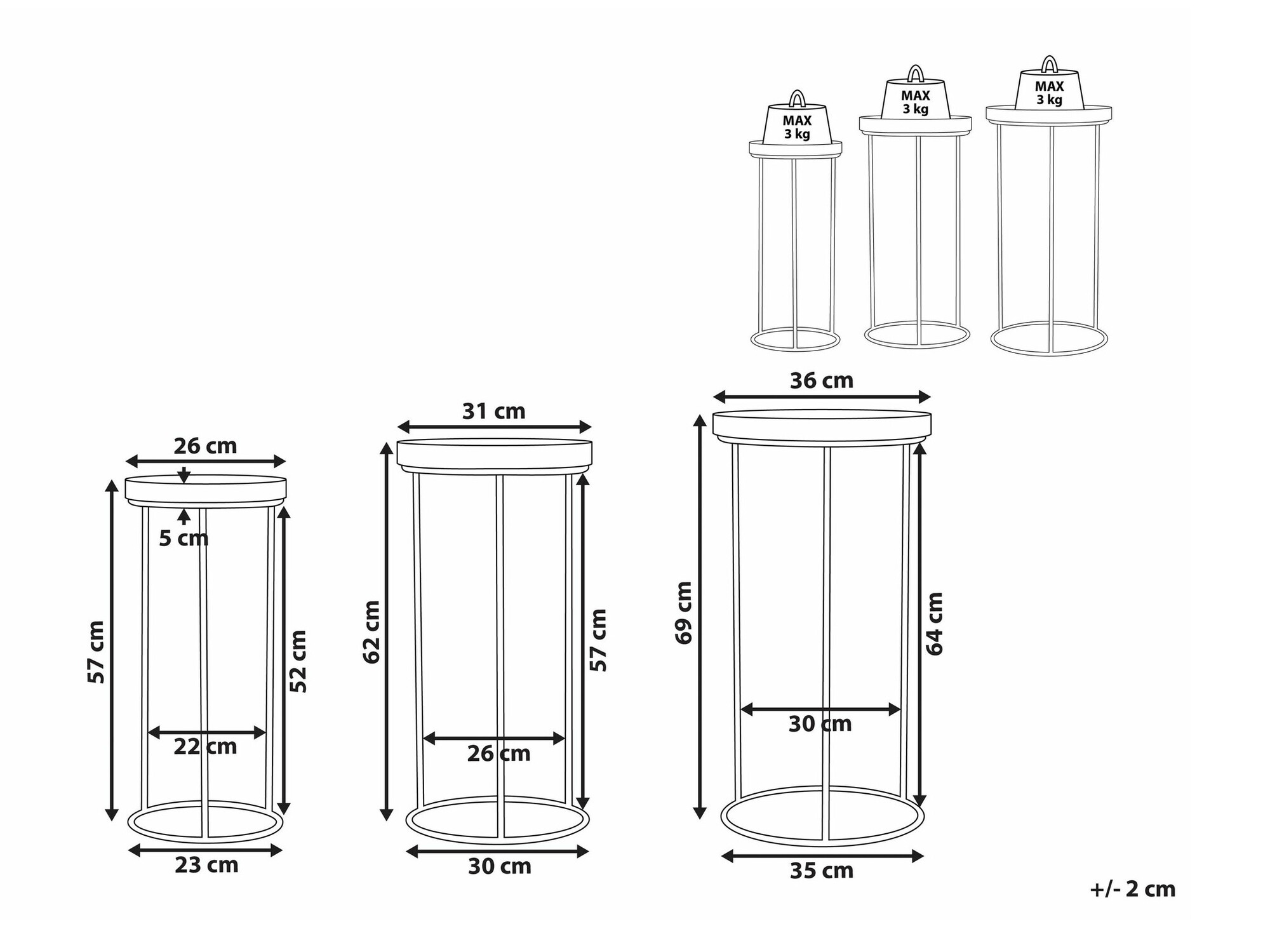 62 x 31; 57 x 26 cm