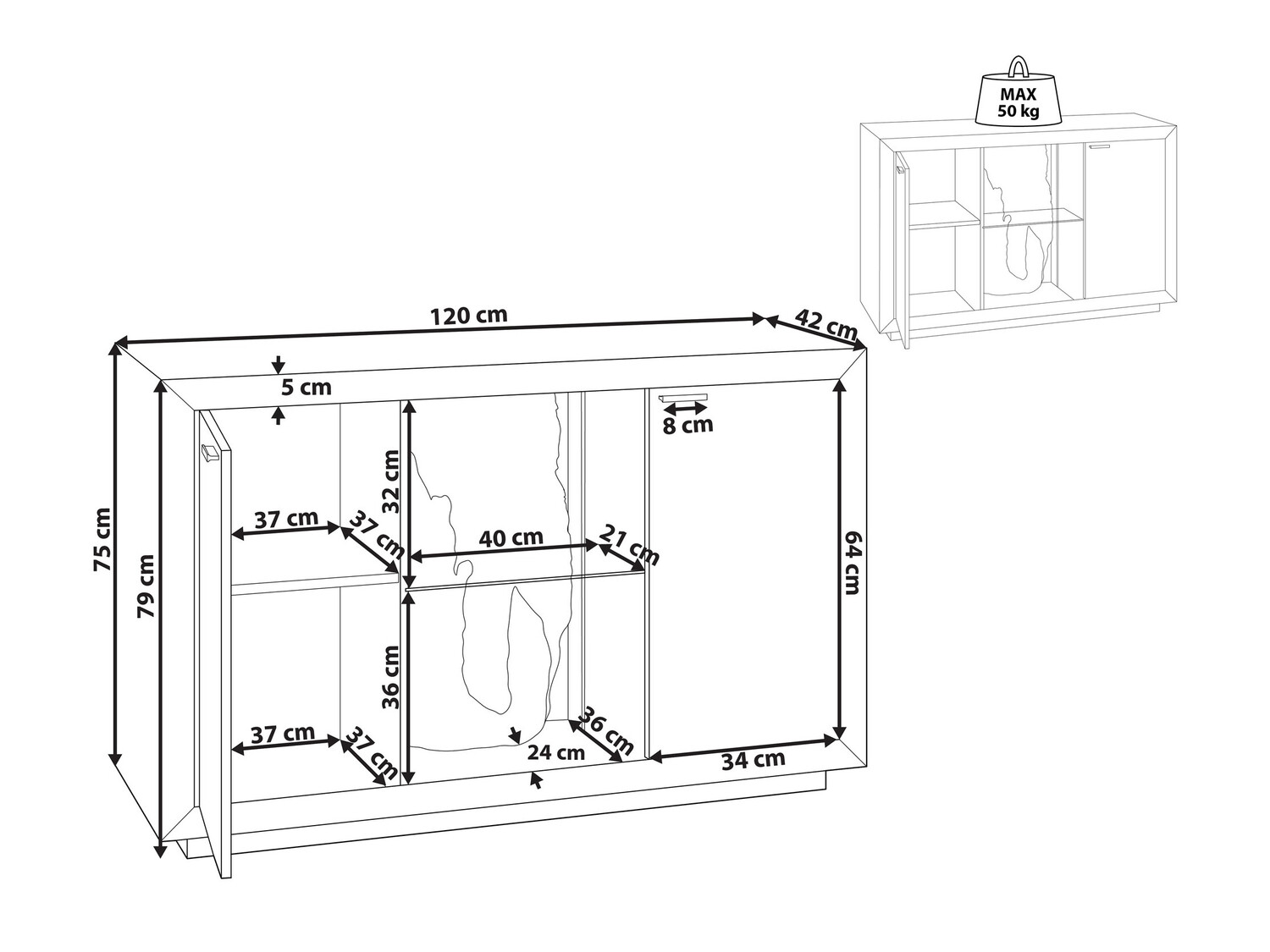 Maksimalus išlaikomas svoris lentynėlei: