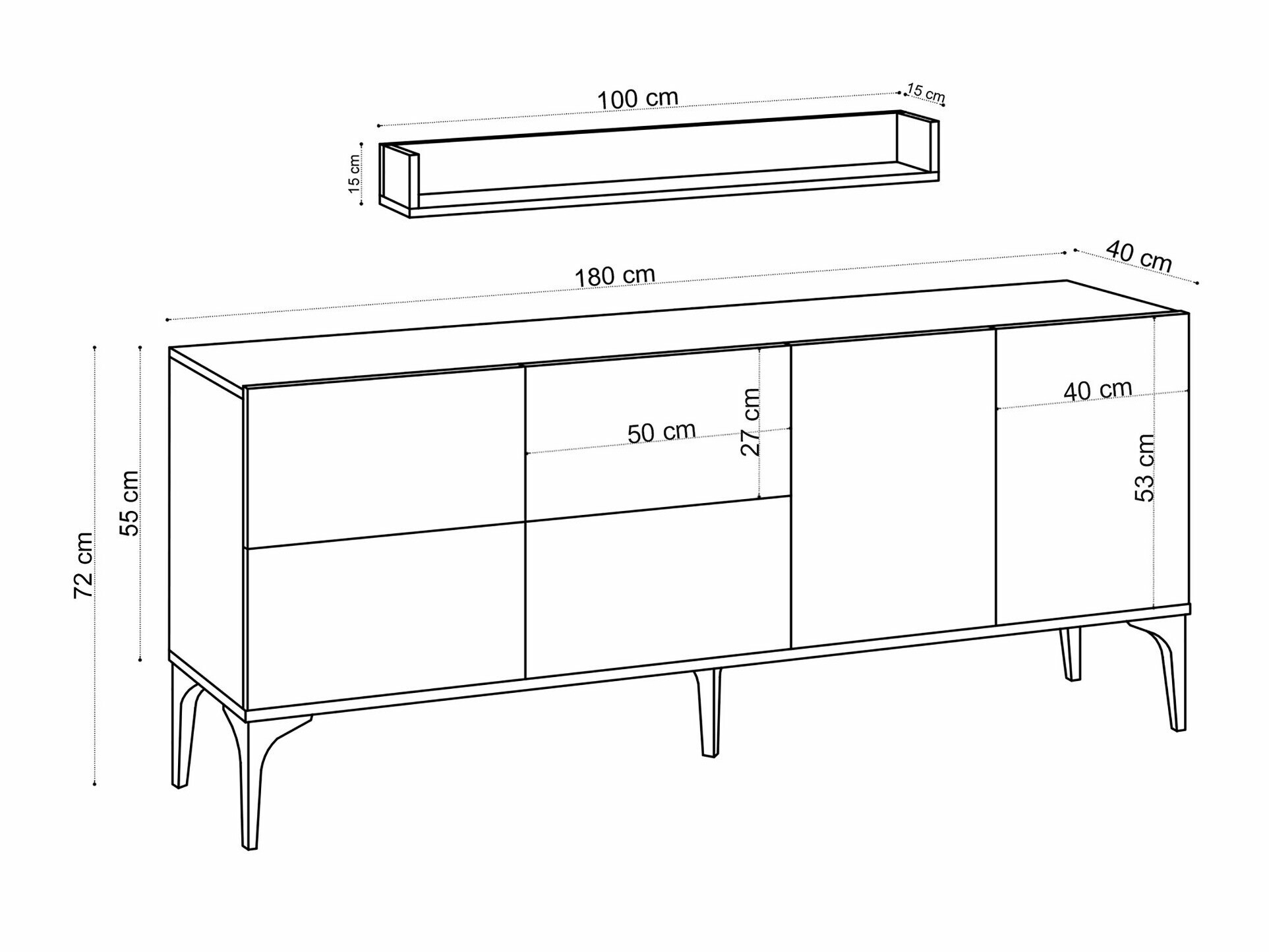 15 x 100 x 15 cm