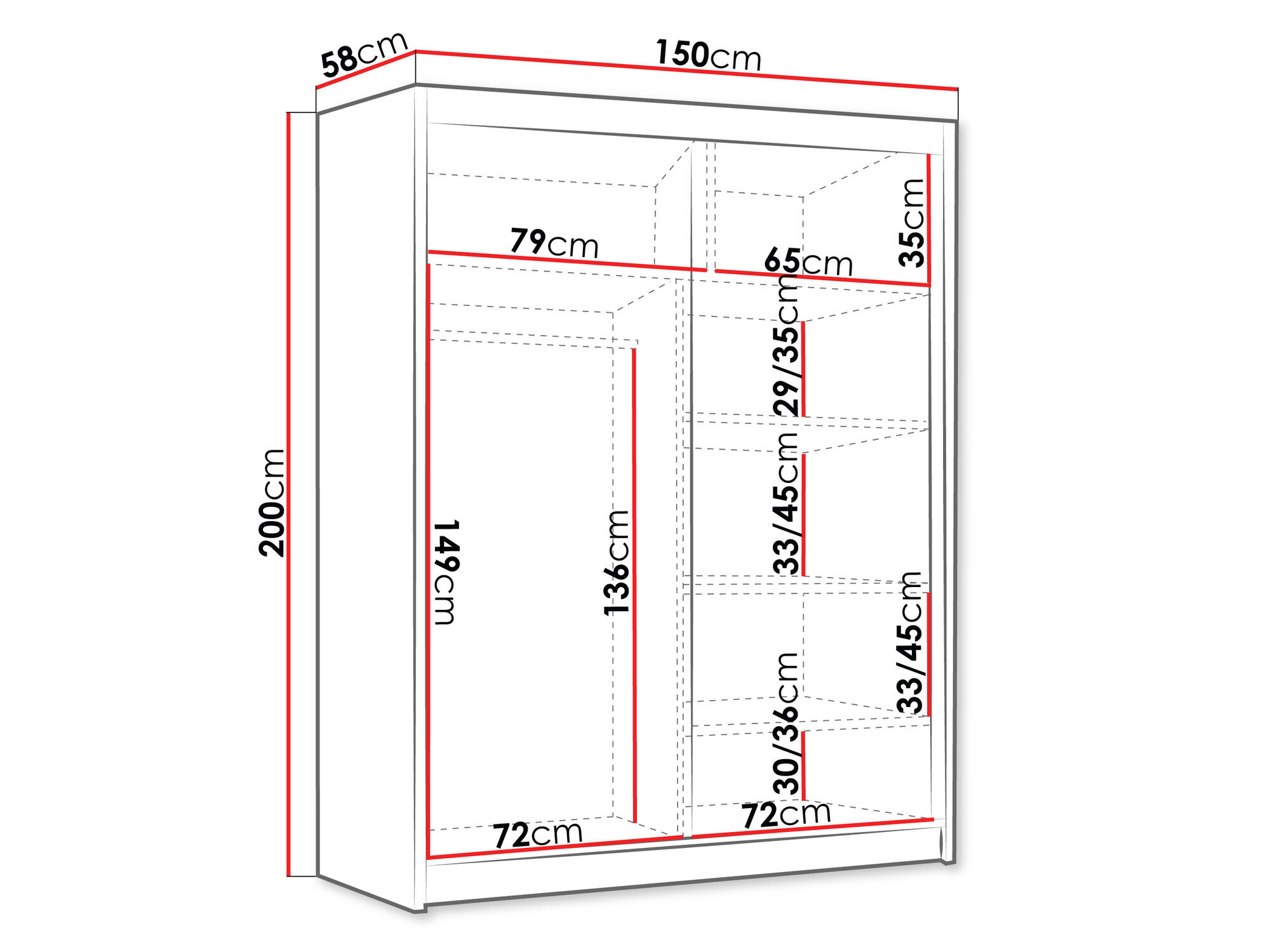 200 cm  150 cm  58 cm