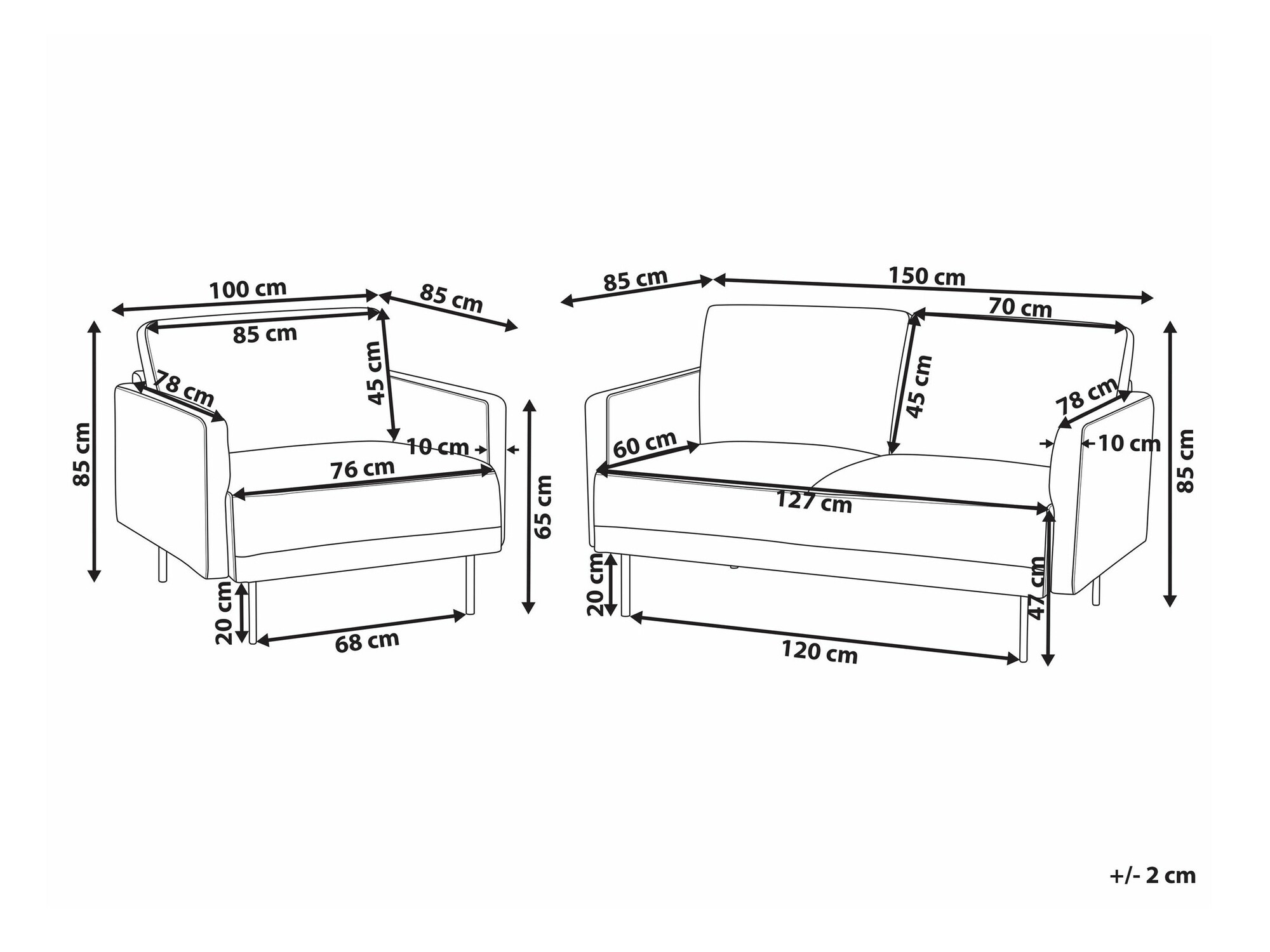 Dvivietės sofos matmenys: