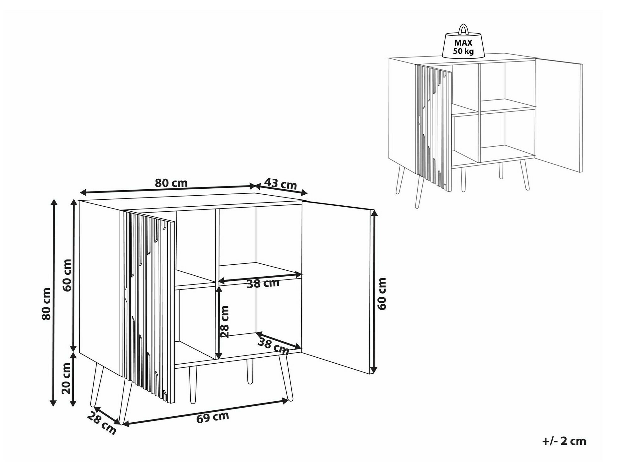 80 x 80 x 43 cm