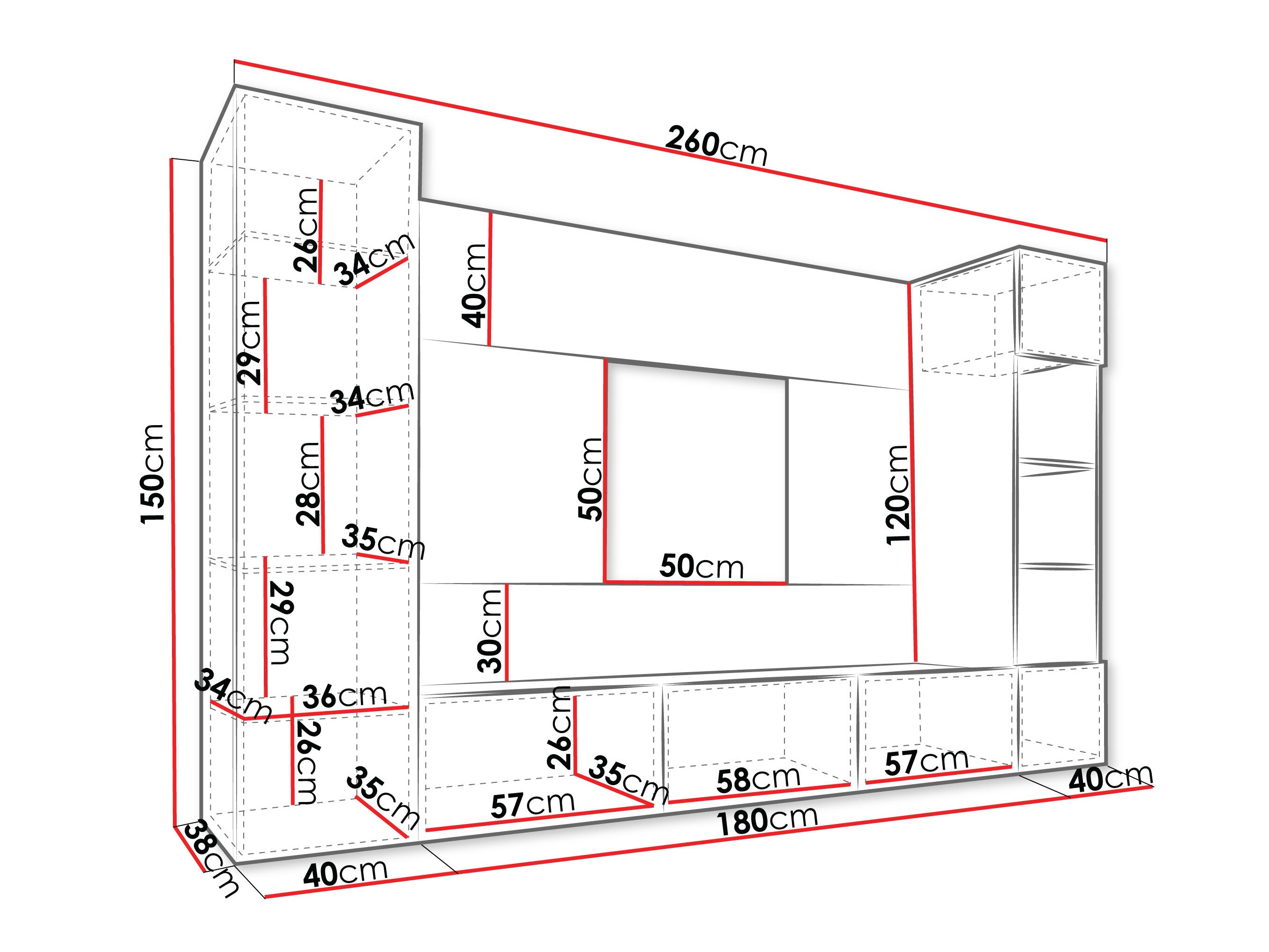 150 x 180 x 38 cm
