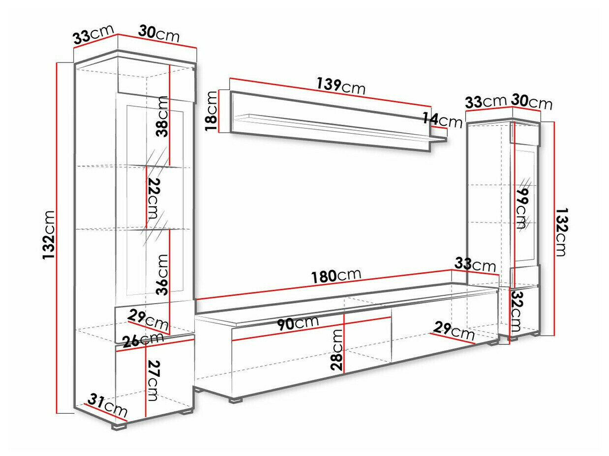 32 x 180 x 33 cm