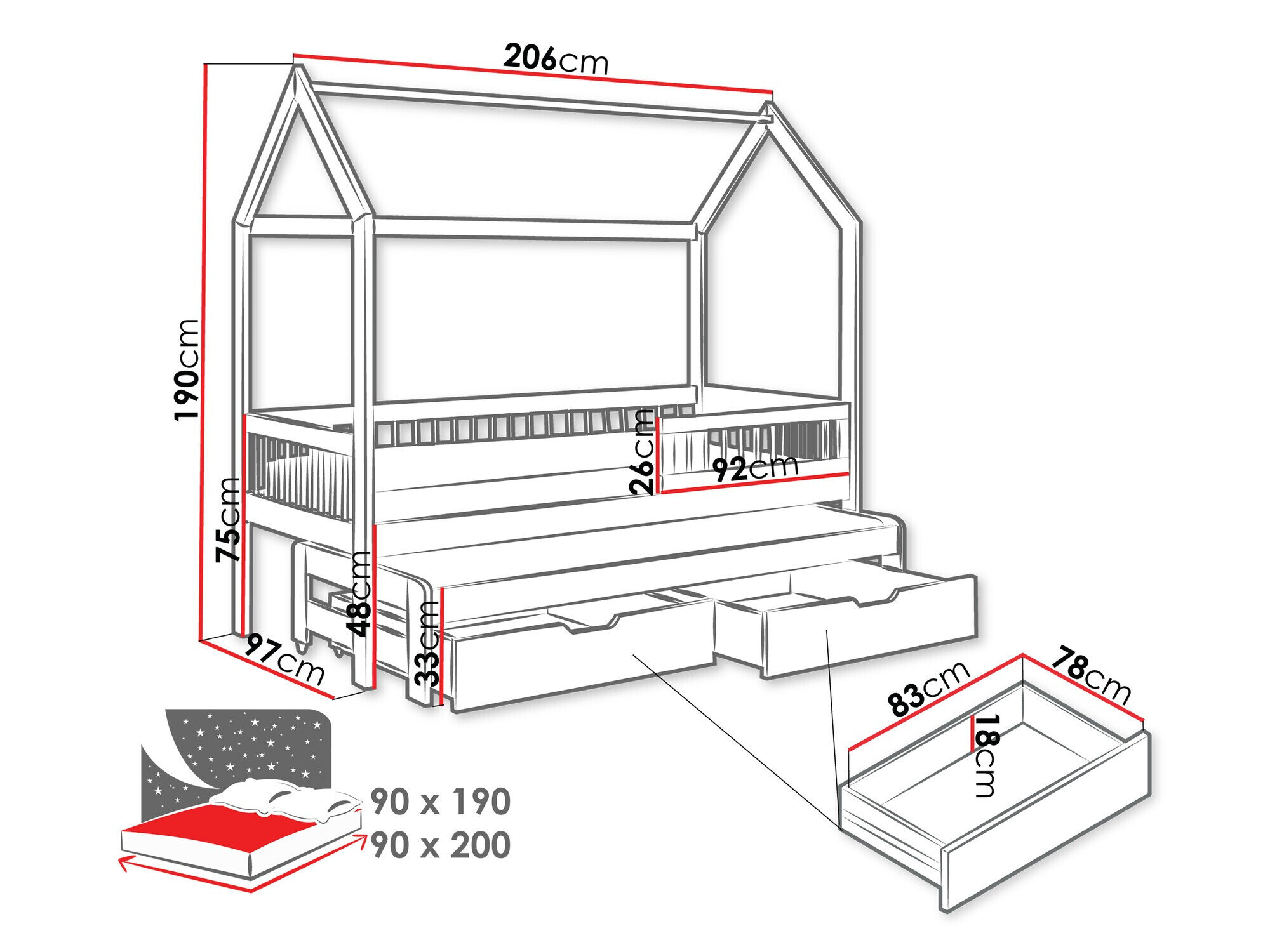 - 90 x 190 cm