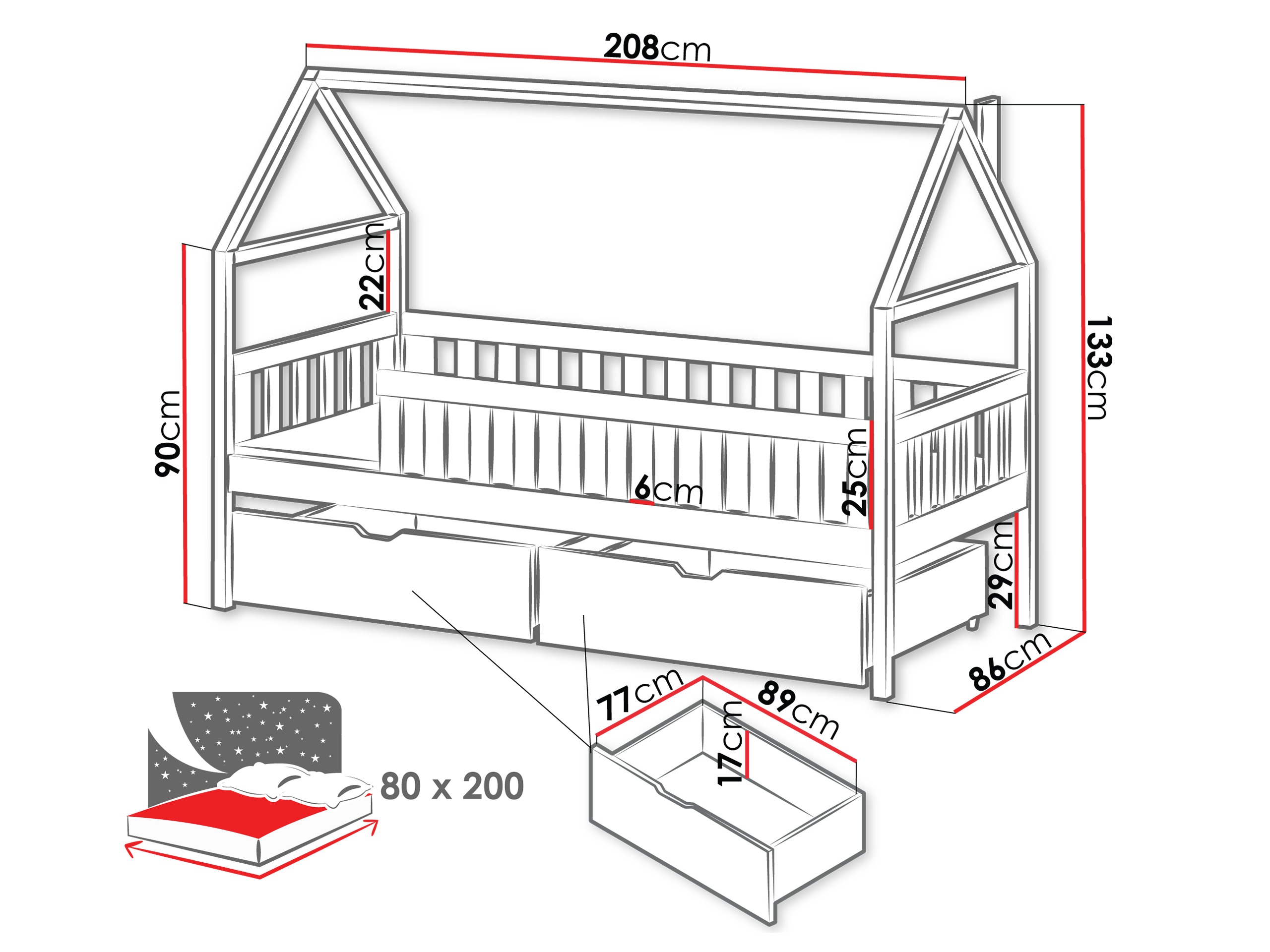 - 80 x 200 cm