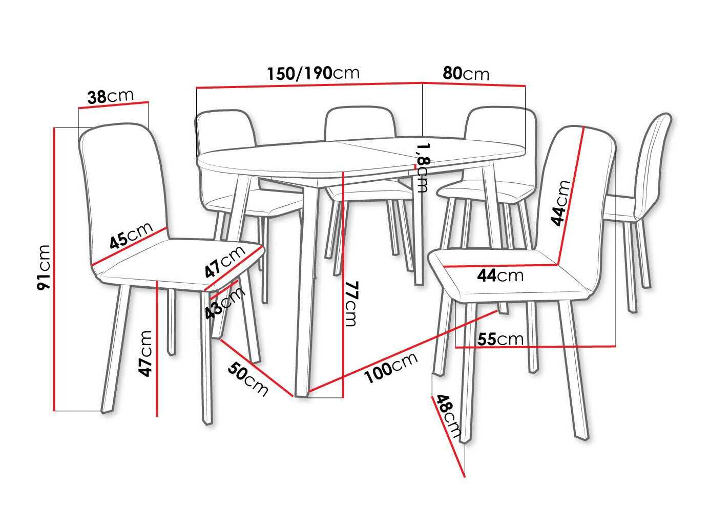 77 cm  80 cm  150 cm