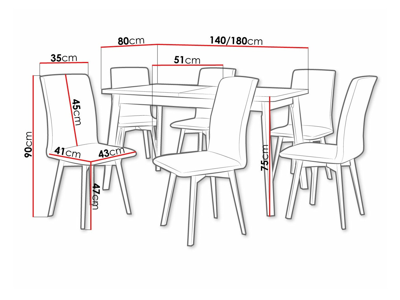 Kėdės matmenys: