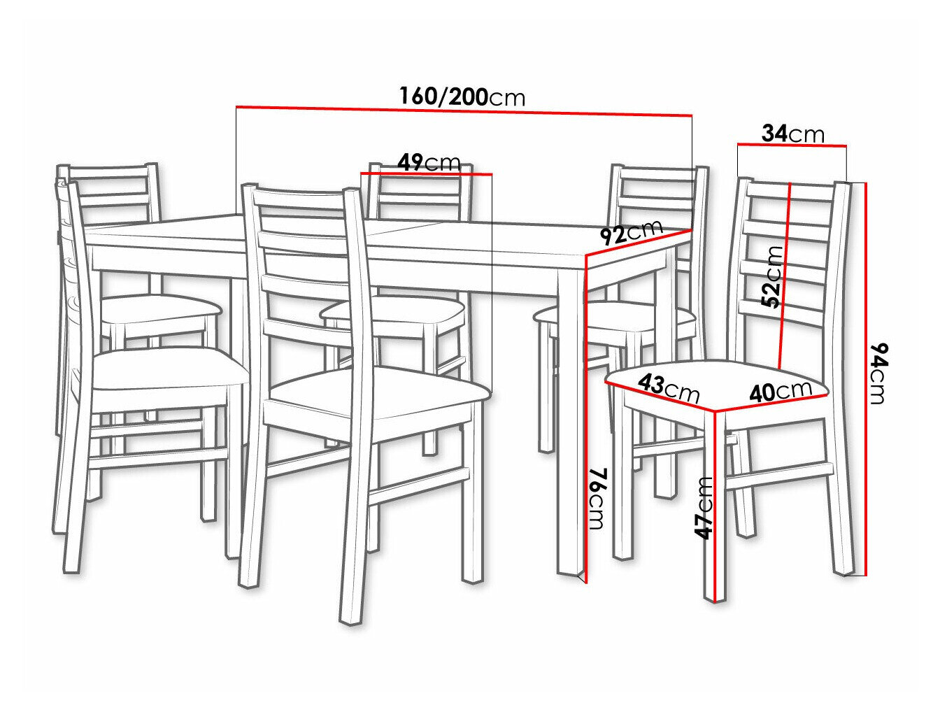 Kėdės matmenys: