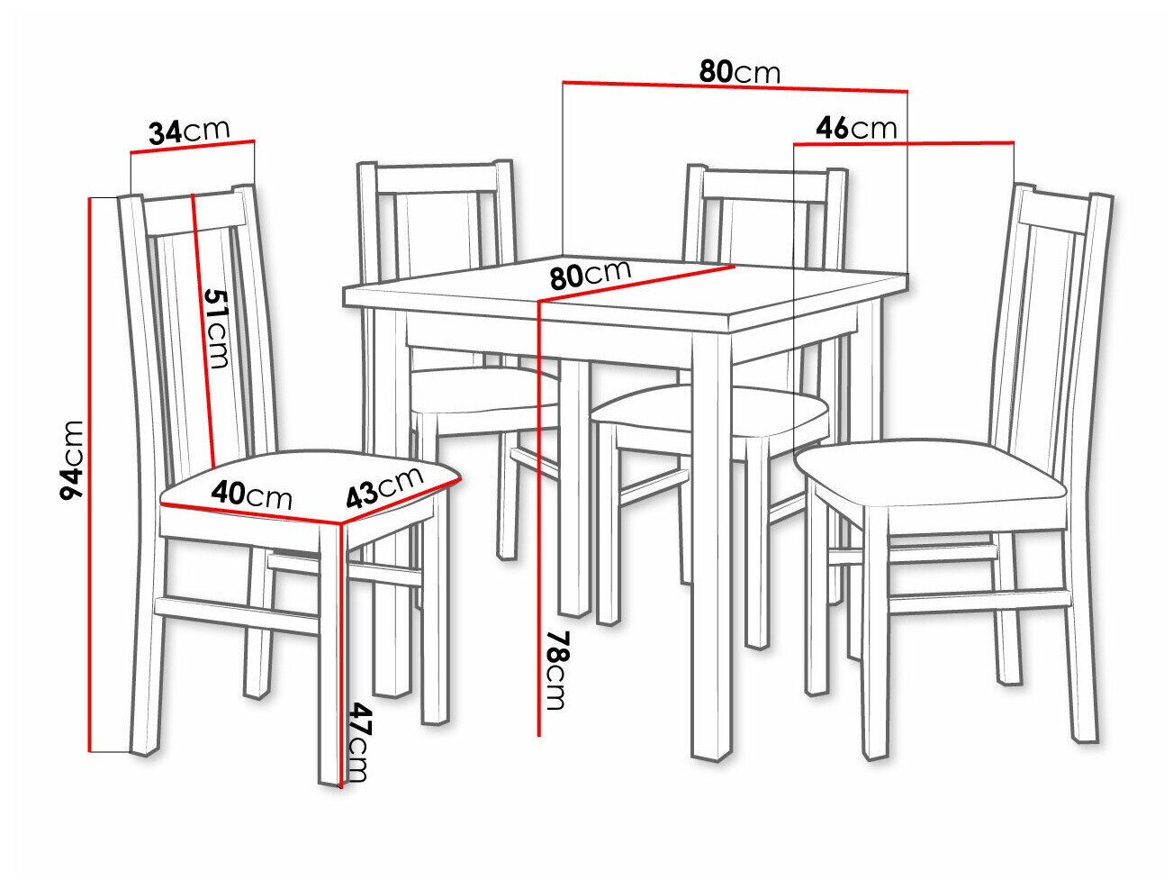 78 cm  80 cm  80 cm