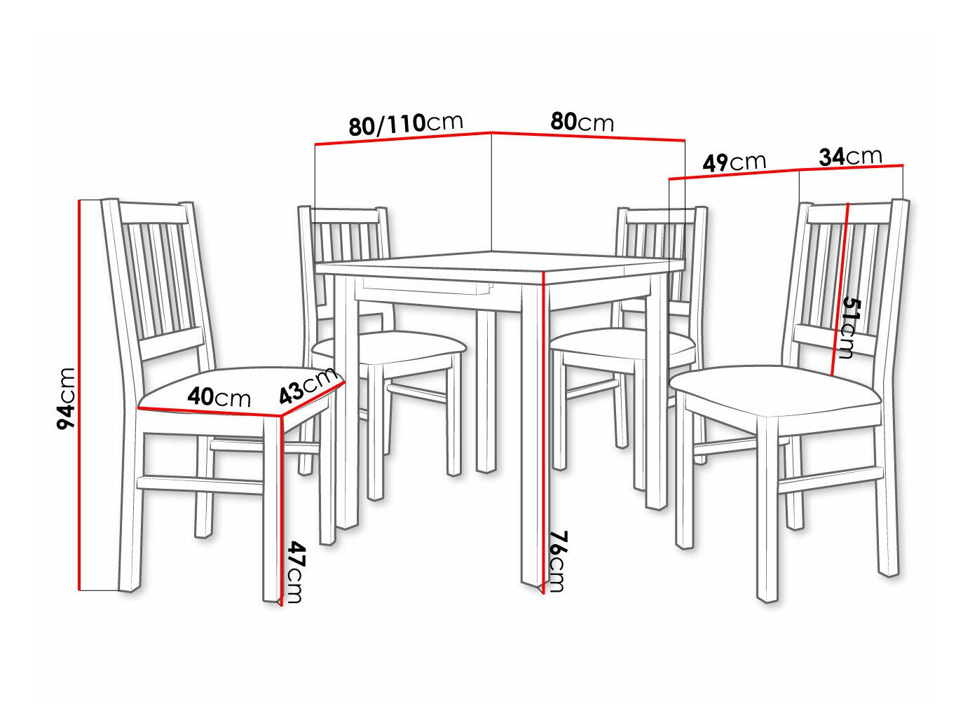 Kėdės matmenys: