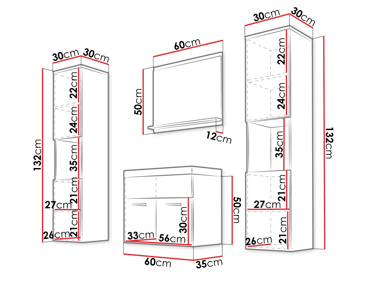 132 x 30 x 30 cm
