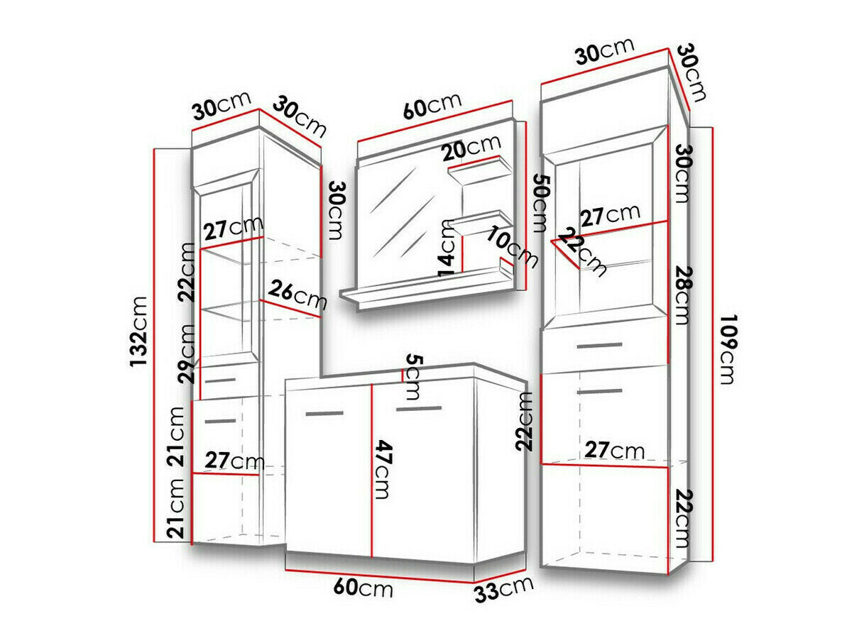 109 x 30 x 30; 132 x 30 x 30 cm